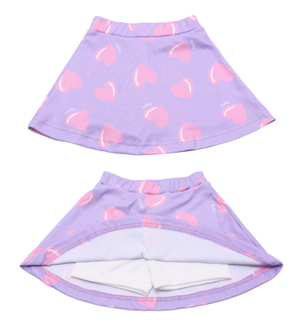 Pollera con short de morley en color lila con corazones rosas